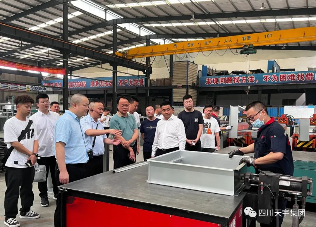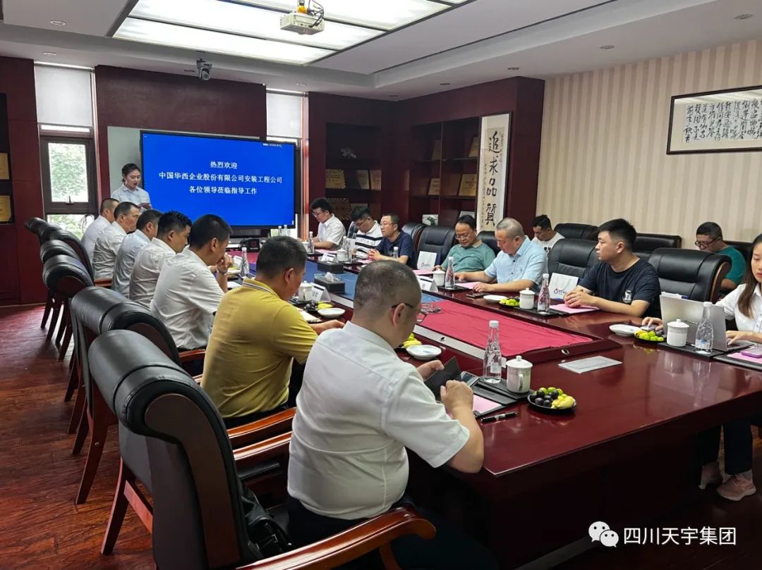 2023年7月7日下午,中國(guó)華西企業(yè)股份有限公司安裝工程公司總經(jīng)理徐文忠?guī)ьI(lǐng)團(tuán)隊(duì)考察四川天宇集團(tuán)生產(chǎn)基地,四川天宇集團(tuán)總經(jīng)理?xiàng)罡邼蓴y團(tuán)隊(duì)進(jìn)行接待。