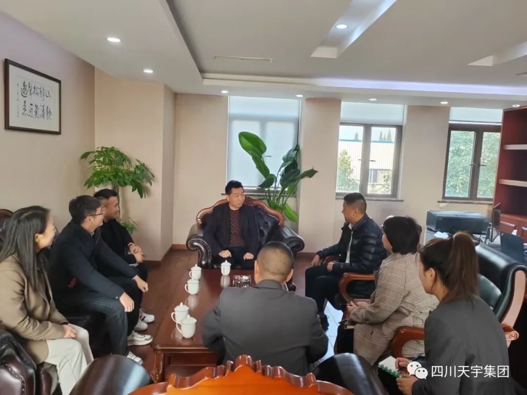 2023年11月28日,大邑縣沙渠企業(yè)家協(xié)會秘書長王蘭剛、秘書徐艷、王正、會員單位:成都市藍樸環(huán)保咨詢有限公司工作人員一行人蒞臨四川天宇集團生產(chǎn)基地,開展行業(yè)工作交流座談會,集團常務(wù)副總經(jīng)理程德君同志帶領(lǐng)基地管理層參與工作交流。